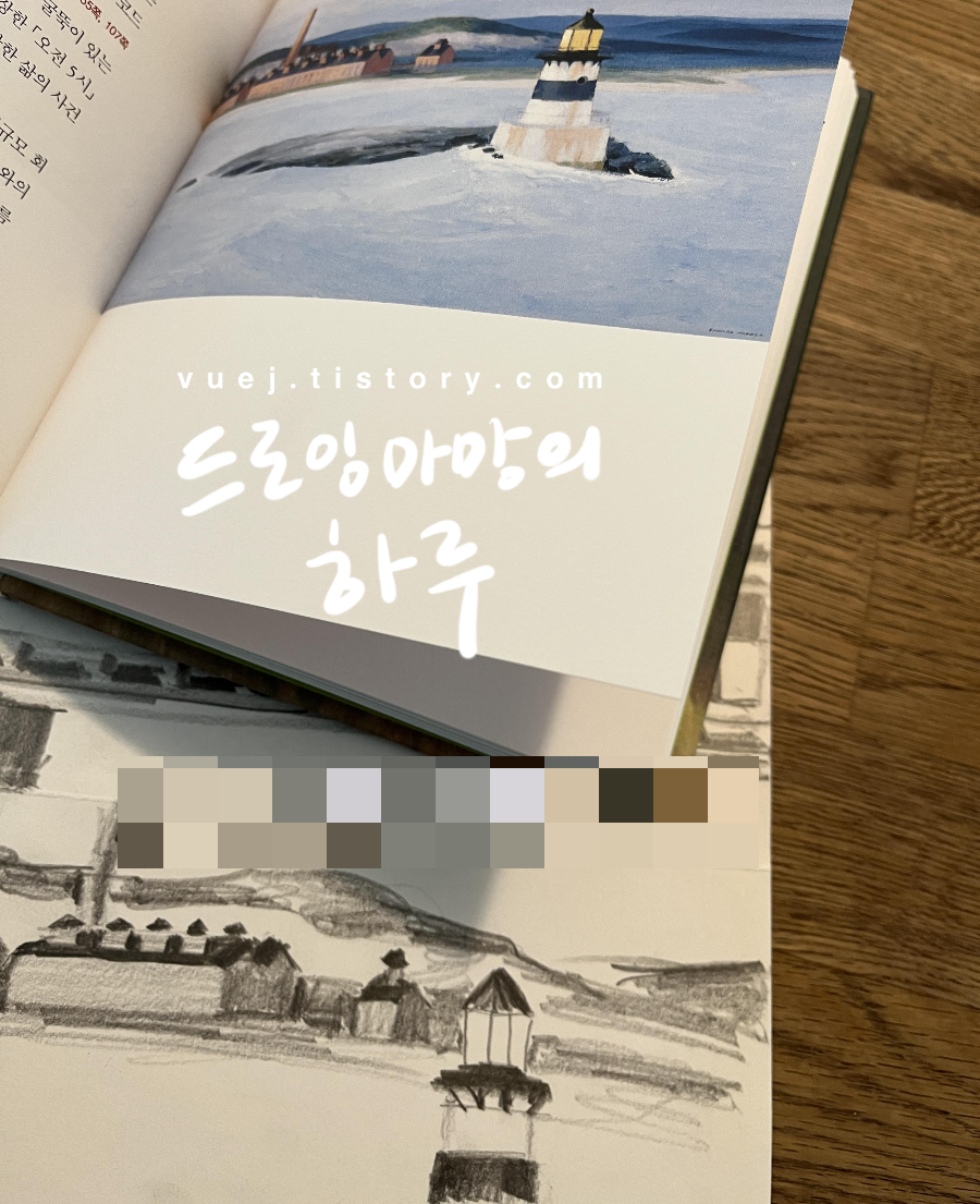 읽어보니 에드워드 호퍼의 일생을 시처럼 표현해 놓았더라고요. 짧고 단편적인 이야기들이 단순하게 놓여 있어요. 다소 에드워드 호퍼가 어려운 분들은 한번 가볍게 읽어보시길 권해요. 지금 시립미술관에서 전시하고 있는데 보시기 전에 후루룩 읽기는 추천! 모르는 단어는 페이지 아래 주석이 달려있으니 이해하시면서 보시기 좋을 거예요.