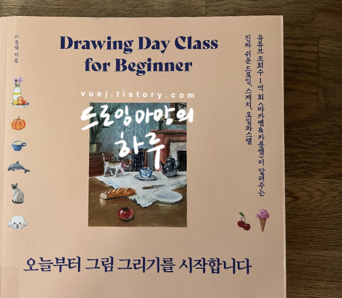표지에 있는 그림이 이뻐서 끌렸는데 내용이 알찬, drawing day class for beginner 오늘부터 그림 그리기를 시작합니다