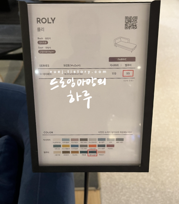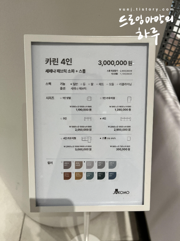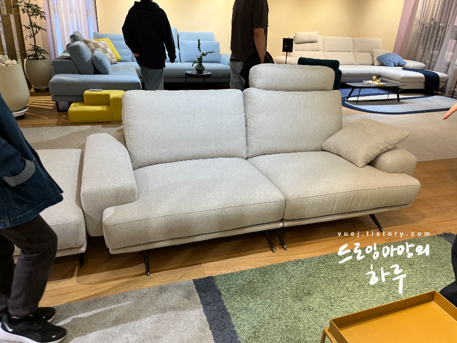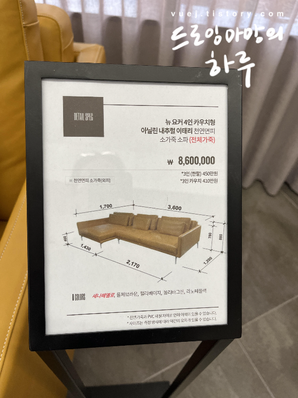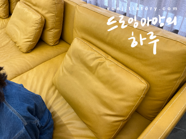 역시 비싼 만큼 가죽의 질감이 다르더라고요. 디자인도 심플하고 시원해서 시선이 가더라고요 원래 5색 가죽으로 구매 가능한데 쇼룸에 있는 노란색 가죽은 이제 못 만든다고 하더라고요. 재고가 없는 건지. 그래서 쇼품에 있는 소파를 구매할 시 15% 할인 가능하다고 해요. 만져도 보시고 앉아도 보시고 좋은 가죽의 느낌을 느껴보시길 바라요. 많이 경험해야 좋은 소파를 고르는 나만의 기준이 생기더라고요. 안 사더라도 체험은 하자!