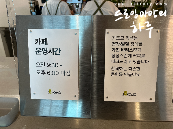 일층에 카페가 있어요. 무료는 아니고 구매해서 쉬어갈 수 있는 일반적인 카페예요. 자리만 일층에 있을 뿐. 사람이 없어서 썰렁한 느낌이에요. 에싸 위층 구경하고 대부분 테이크아웃으로 구매하고 나가시는 모양이에요.