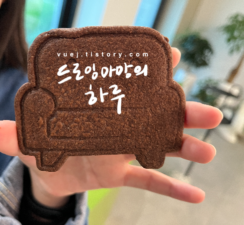 구매하지 않으시더라도 방문하신 분들 모두 이용가능한 무료카페예요. 커피 한잔당 쿠키 하나 주시는데 아이가 많이 좋아하는 코스입니다. 친절하게 주문하기, 감사하게 받고 고마움을 표현하기