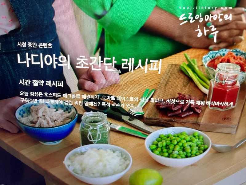 넷플리스 '나디야의 초간단 레시피' 식사 준비시간을 단축할 수 있는 좋은 레시피가 있어서 소개해요.