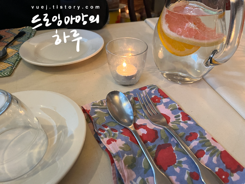 뭔가 여행 온 것 같은 기분이 드는 공간으로 변한다고 할까요. 데이트나 친구끼리 식사자리라면 와인 한잔 추가 할 수밖에 없는 분위기예요. 1-2시간 식사를 하고 나오면 바로 앞에 널찍한 공원이 있어서 헤어지기 아쉽다면 천천히 공원 산책하는 것도 추천합니다.
