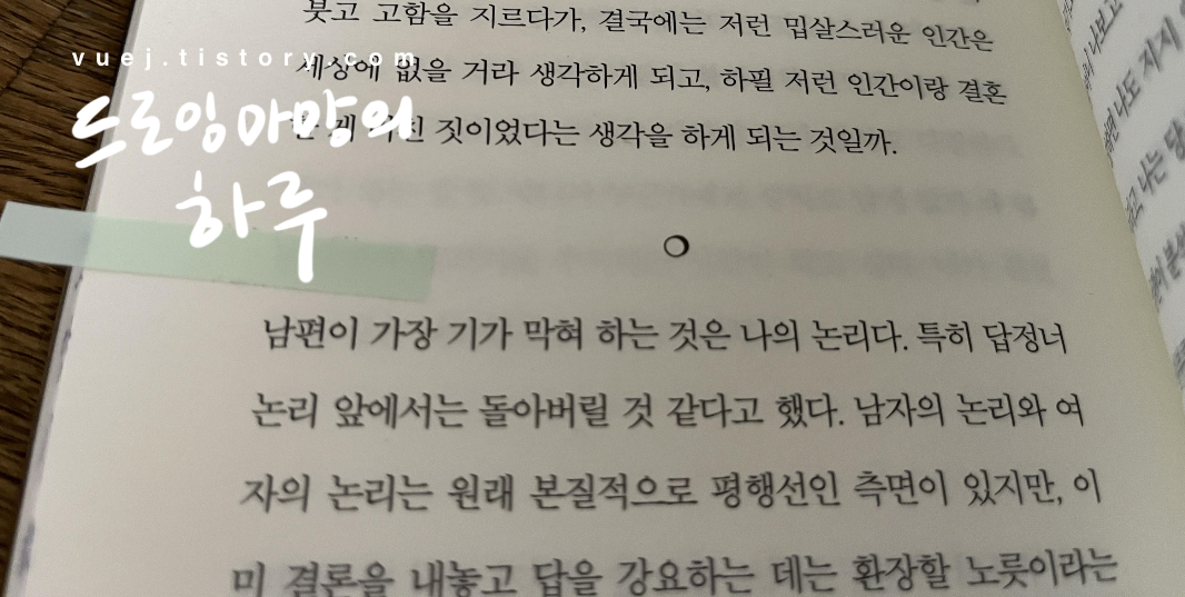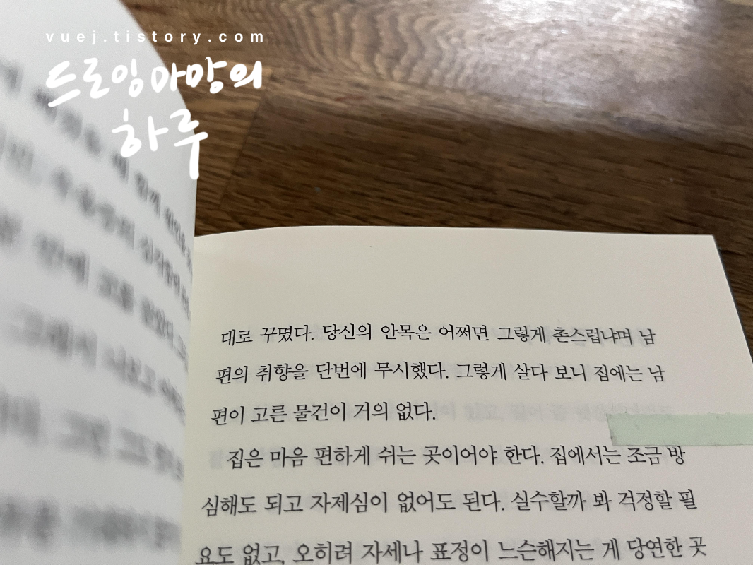 너무 잘 읽히는 에세이가 오랜만인데 주된 글의 주인공은 부부, 두 사람이 같이 살면서 겼는 감정적인 어려움이라던지 애매한 상황, 이게 말이 되나 싶은 상황들을 옆에서 차근차근 속삭여 주는 책이다. 소통이 되지 않는다고 느끼는 타인, 심지어 매일을 함께하는 가족인 경우에 도움이 되는 마음들, 글들이 수두룩이다.