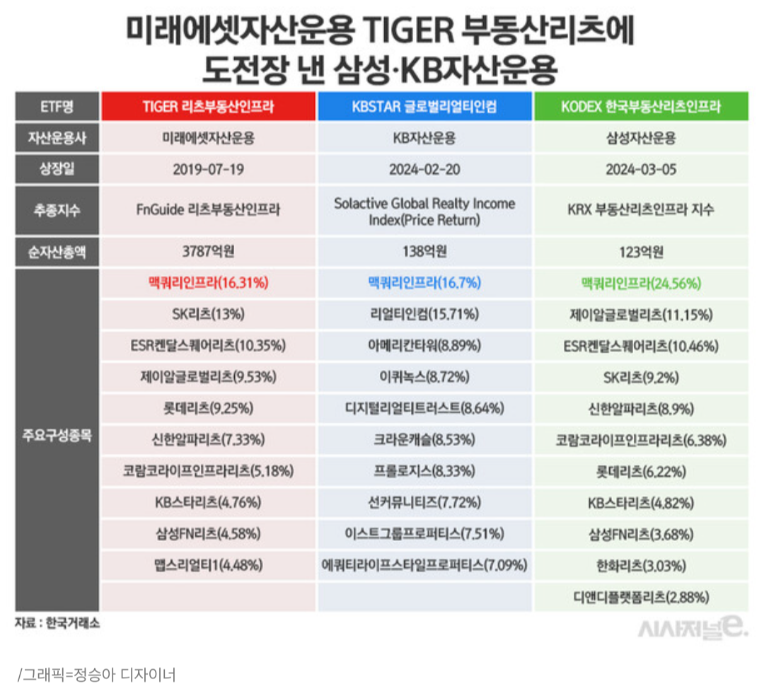 | 배당이 좋아요] 맥쿼리인프라를 살까? TIGER 리츠부동산인프라 ETF를 살까? (0) | 2024.03.20 |