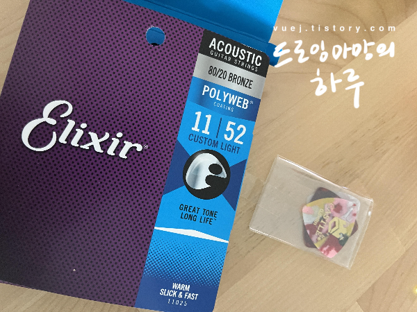 아이가 기타를 배우는데 집에서 서용하는 기타줄에 녹이 많이 나와서 교환하게 되었어요. 아이가 레슨 때 사용하는 기타줄이 부드럽고 소리도 마음에 든다고 해서 선생님께 문의해보니 가격이 좀 있지만 엘릭서 폴리웹 11/52 기타줄을 추천해주시더라고요.