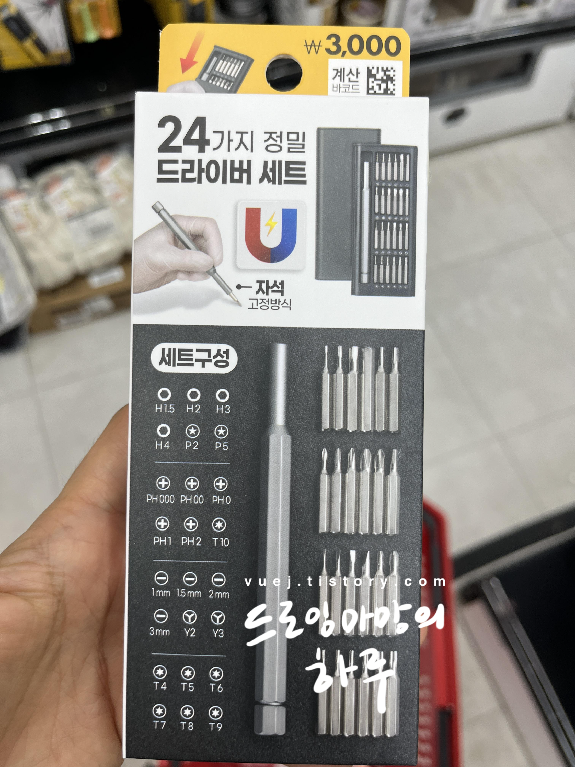 가끔 필요할 때가 있는데 인터넷에 찾아보니 너무 현장 드라이버 느낌이라 안사고 있다가 다이소에서 발견하고 구매. 가격도 저렴한데 자석으로 되어 있어서 느낌도 괜찮음.