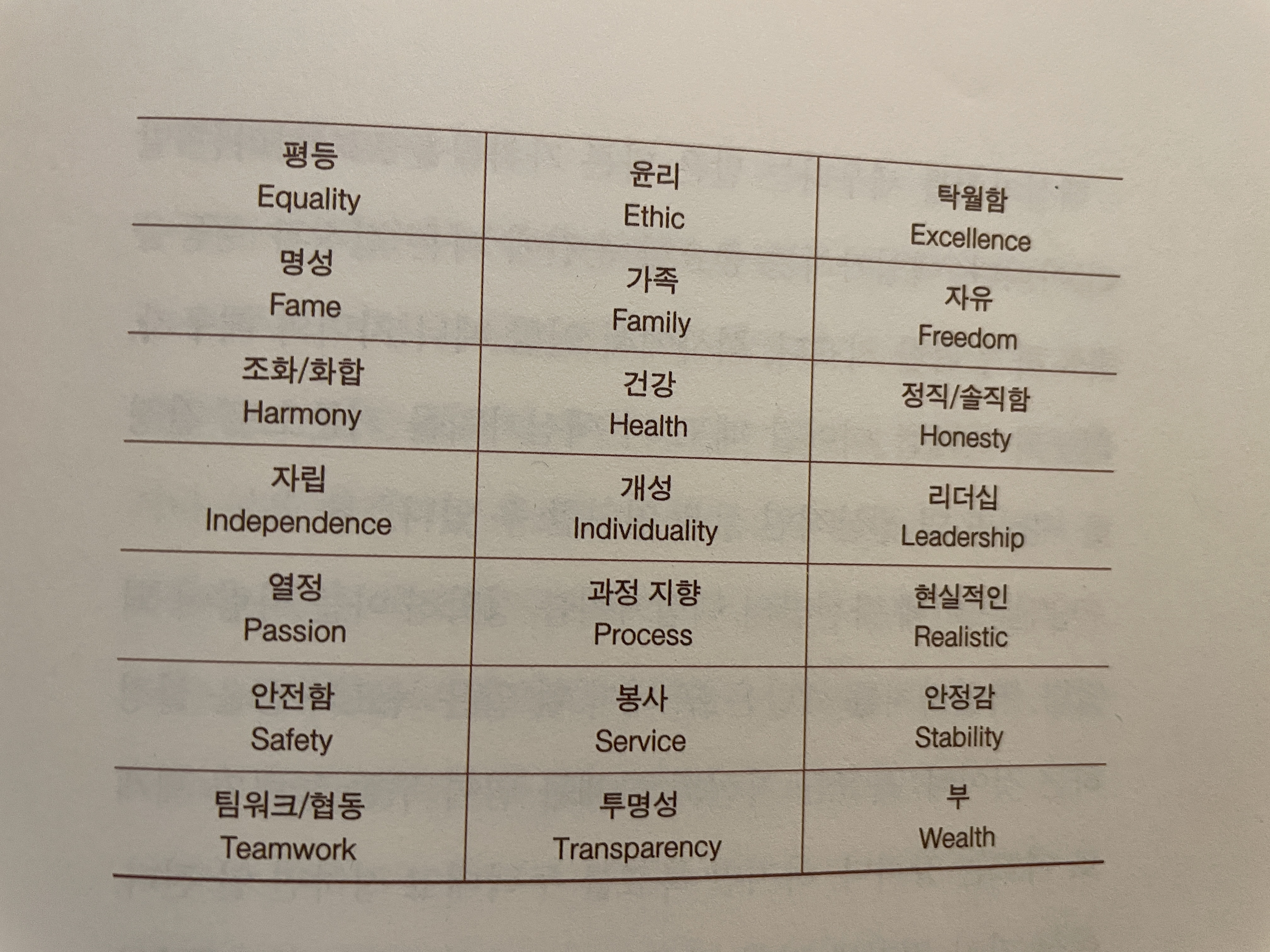 내가 정한 핵심가치 10가지