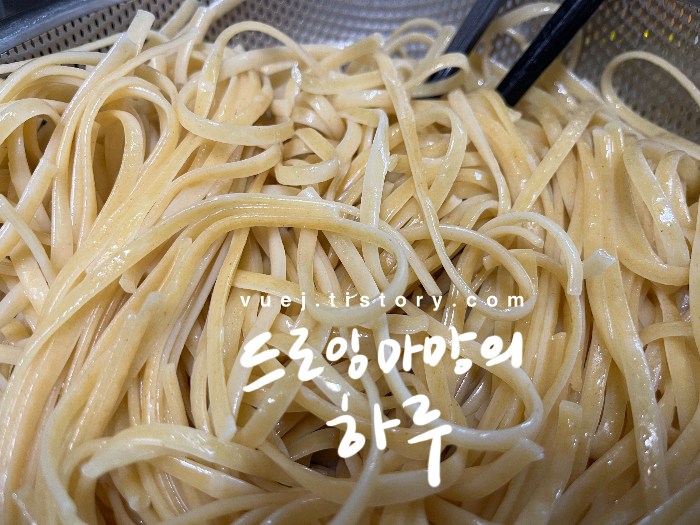2. 면을 소금, 올리브유를 넣고 삶아서 대기시켜 줍니다.